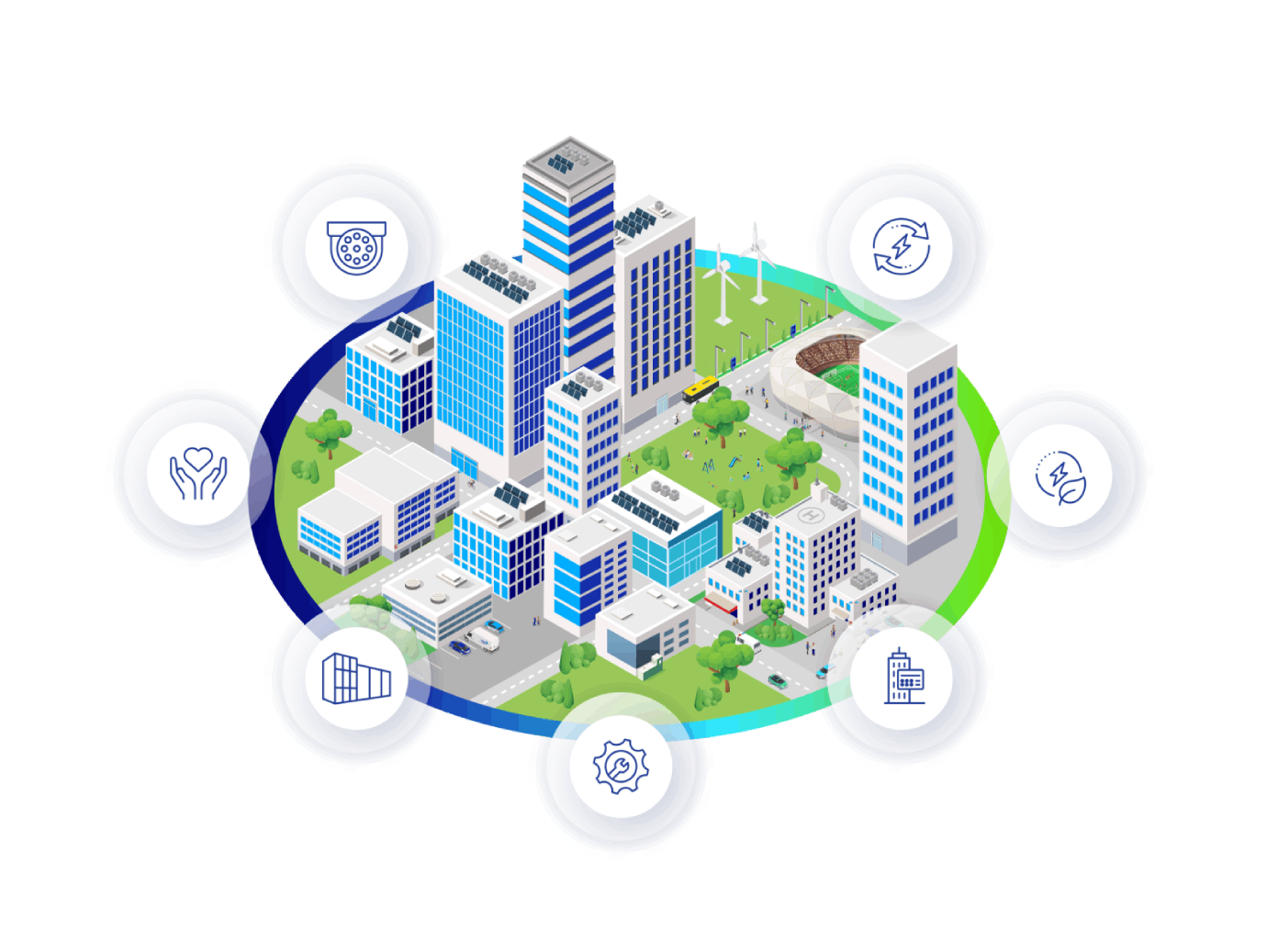 Ein komplettes Ökosystem von vernetzten Technologien, Fachwissen und Dienstleistungen für jede Branche, von Arbeitsplätzen bis zu Schulen, Krankenhäusern, Campus und mehr.